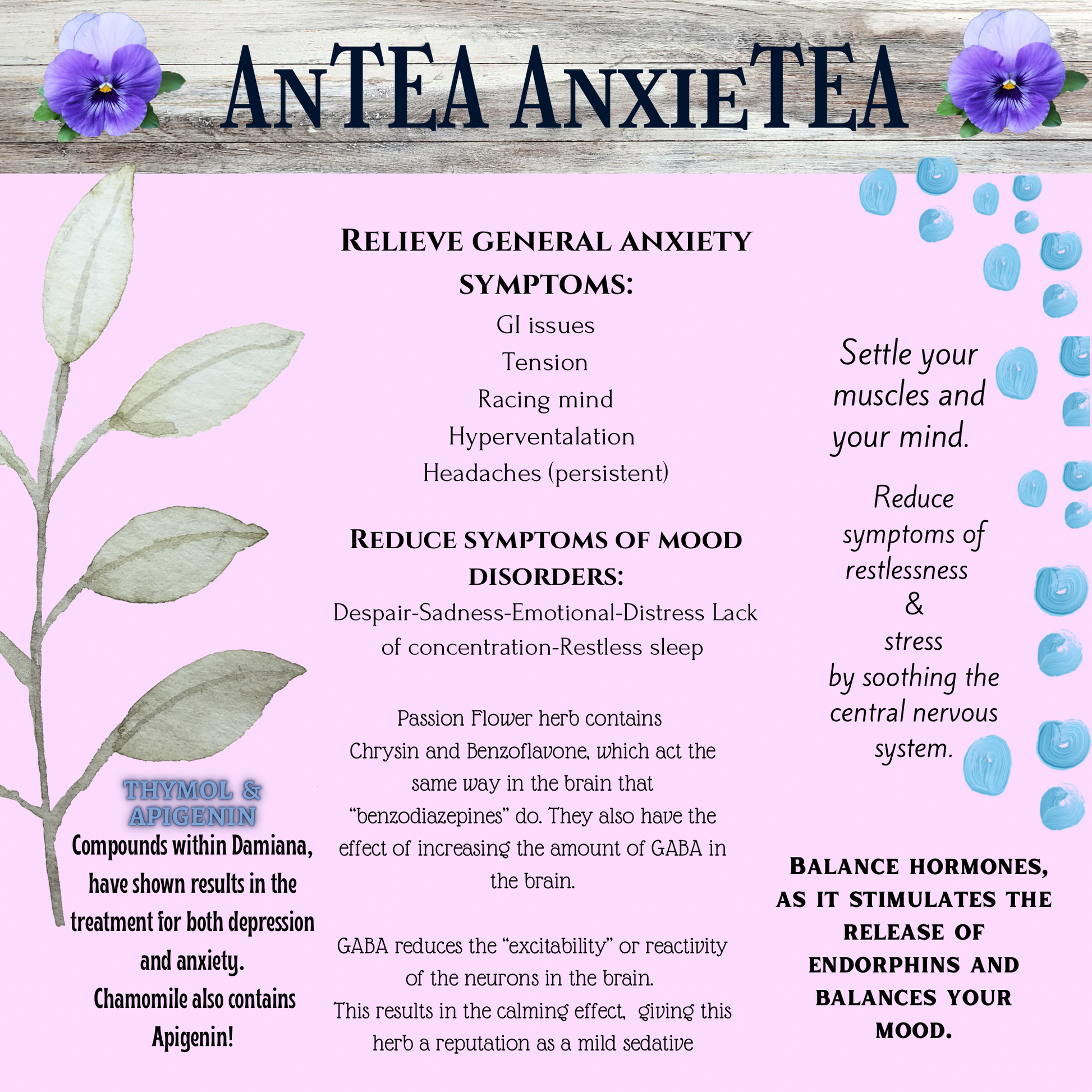 skullcap-chamomile-passion flower herb-lavender gunpowder green tea-spearmint-damania-green oat straw